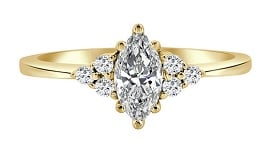 This 14 karat yellow gold engagement ring features 1 center marquise lab grown EF VS diamond totaling 0.60 carat total weight.