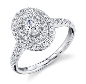 Shy Creation Oval 3/4ctw. Diamond Double Halo Engagement Ring in 14k White Gold