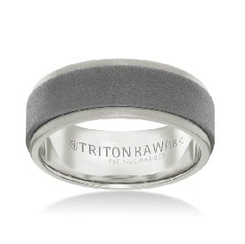 This TritonRAW men's jewelry band shows a refined sensibility with its highly polished, 18-karat white gold step edges and interior, as well as a flat matte tungsten center insert.