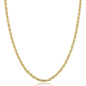 This solid 3.3mm rope chain is 24" in length, 15.9 grams and made with 14 karat yellow gold.