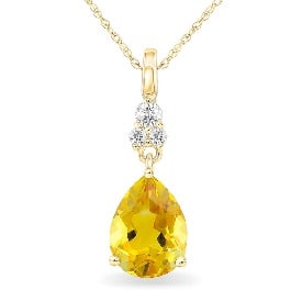 Pear-Shaped Citrine & Diamond Drop Pendant in 10k Yellow Gold
