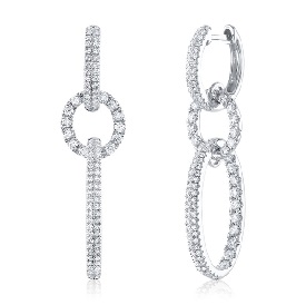 From Shy Creation, wear endless shimmer with these stylish diamond dangle earrings, making perfect jewelry gift ideas. Three interlocked circles are covered in sparkling diamonds, all set in 14-karat white gold.