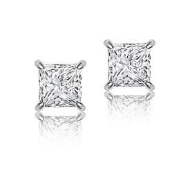 These 4-prong princess-cut diamond solitaire stud earrings are crafted in 14-karat white gold and 1/3ctw.