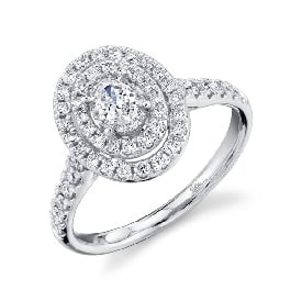 Shy Creation Oval 3/4ctw. Diamond Double Halo Engagement Ring in 14k White Gold
