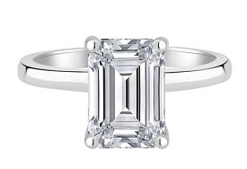 From our simple engagement rings collection, a timeless solitaire engagement ring featuring a luminous emerald-cut lab-grown FG VS diamond with a hidden halo, all set in 14-karat white gold.