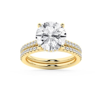 Brilliant-Cut Lab Grown 2 1/4ctw. Diamond Three-Stone Double Band Engagement Ring in 14k Yellow Gold