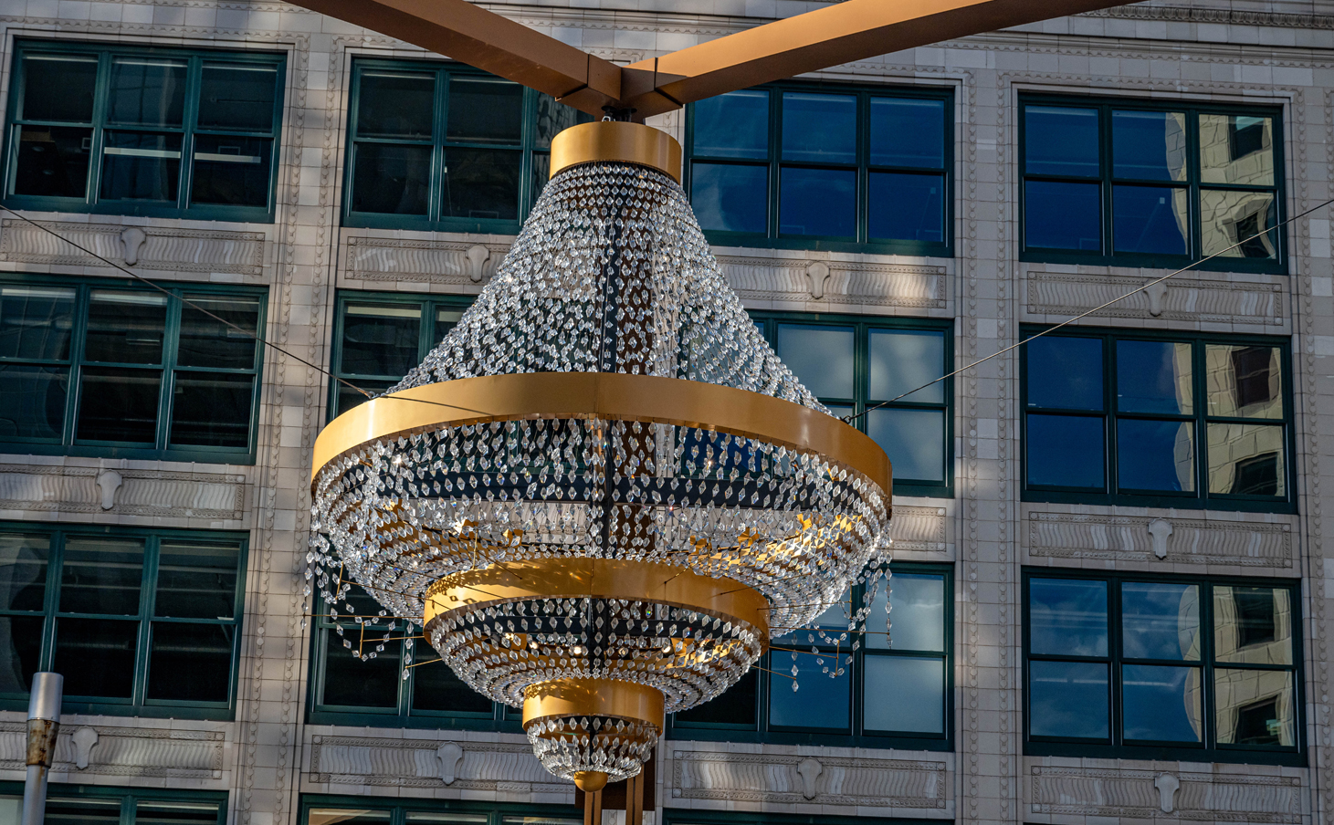Propose under the largest outdoor chandelier in the nation—dramatic, glamorous, and very Cleveland.