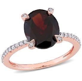 Oval-Cut Garnet and Diamond Ring in 10k Rose Gold