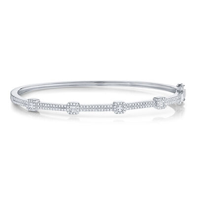 Shy Creation Brilliant-Cut .16ctw. Diamond Bezel Set Textured Fashion Bangle 6.5" in 14k Yellow Gold