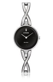 These sophisticated Citizen® Silhouette Bangles feature a classic design in stainless steel and a bold black dial with lines that are sleek, simple, and timeless.